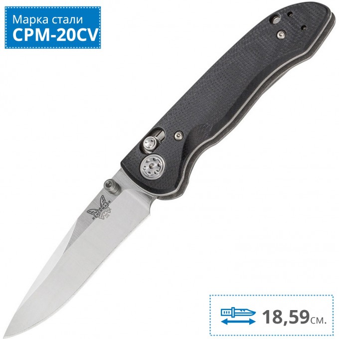 - Клинок из отличной американской стали CPM-20CV, которая обладает агрессивным резом, высокой твёрдостью. Финиш лезвия - поперечный сатин.